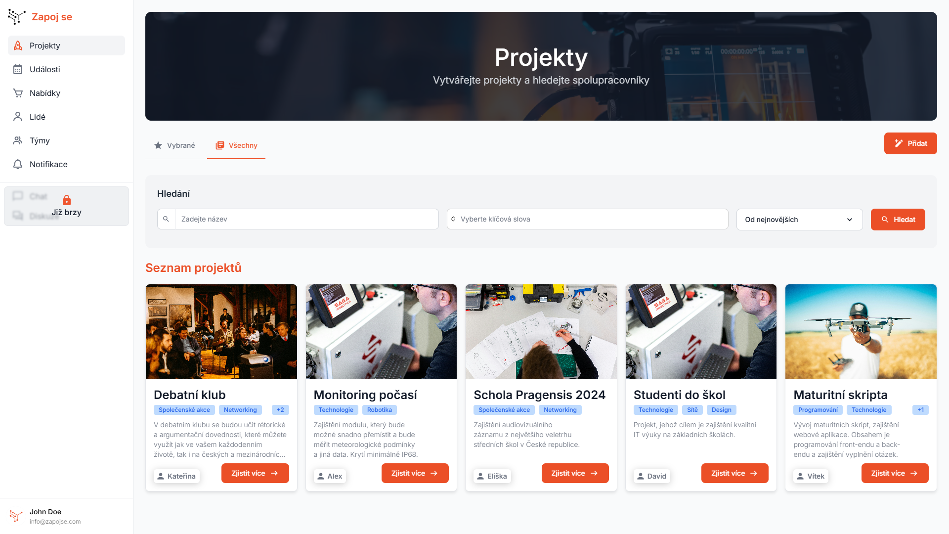 S naší platformou můžete najít nové příležitosti pro spolupráci s ostatními studenty. Zároveň můžete pro sebe najít nové pracovní zkušenosti.